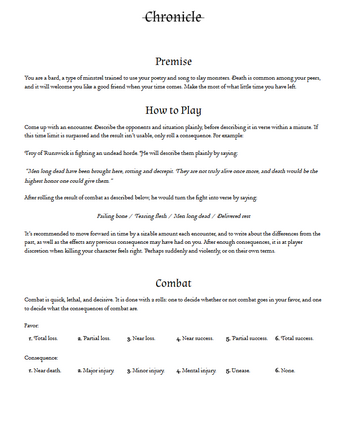 | Tags | journaling, One-page, One-shot, Singleplayer, Solo RPG, storygame, Tabletop, Tabletop role-playing game |
